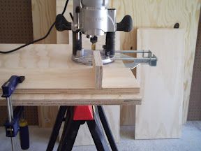 The final step for the day was to setup my dado jig. I have a set of plywood router bits where the 3/4" bit is actually 22/32". I wanted the dado to be just about 1/4" deep so I set my plunge router to that and fit the straight edge guide. I intentionally made the first dado deep in on a scrap piece do I could do multiple passes if needed. Turns out the depth is great and the fit is excellent.