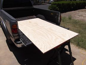 I used the bed of my pickup as my plywood cutting station. It is just at 100 here in Austin, so I think my next project will be to build a plywood cutting center.