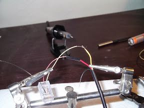 I could not get the waterproof sensor wires to fit and crimp into the RJ-11 plugs I had, so I took three short lengths of wire stripped from a phone cord to make a tail that is a couple inches long. I then wound and soldered the sensor wires to the tail.